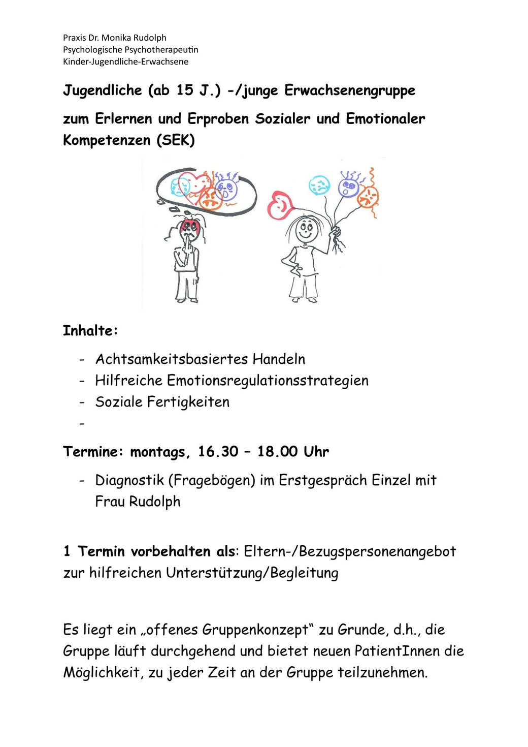 Nach Abschluss der Diagnostikphase wird von mir in Absprache mit KInd/Jugendlichen/Erziehungsberechtigten der Antrag auf eine Verhaltenstherapie-Kurzzeit (24 Therapiestunden für Kind/Jugendliche + 6 Therapiestunden für Eltern/Bezugspersonen) gestellt. Eine Therapiestunde dauert 50 min. Der Abschluss der Therapie richtet sich individuell nach Therapiezielerreichung und Minderung/Heilung von Leid.